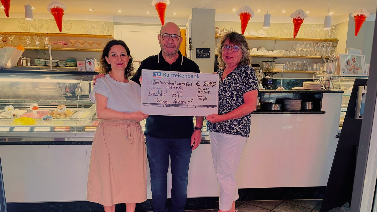 Spendenübergabe an “Dachtel hilft kranken Kindern” © Eiscafé Angelo